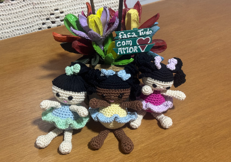 Preencher tempo ocioso, conhecimento e encantamento por bonecas feitas com técnica de Amigurumi.